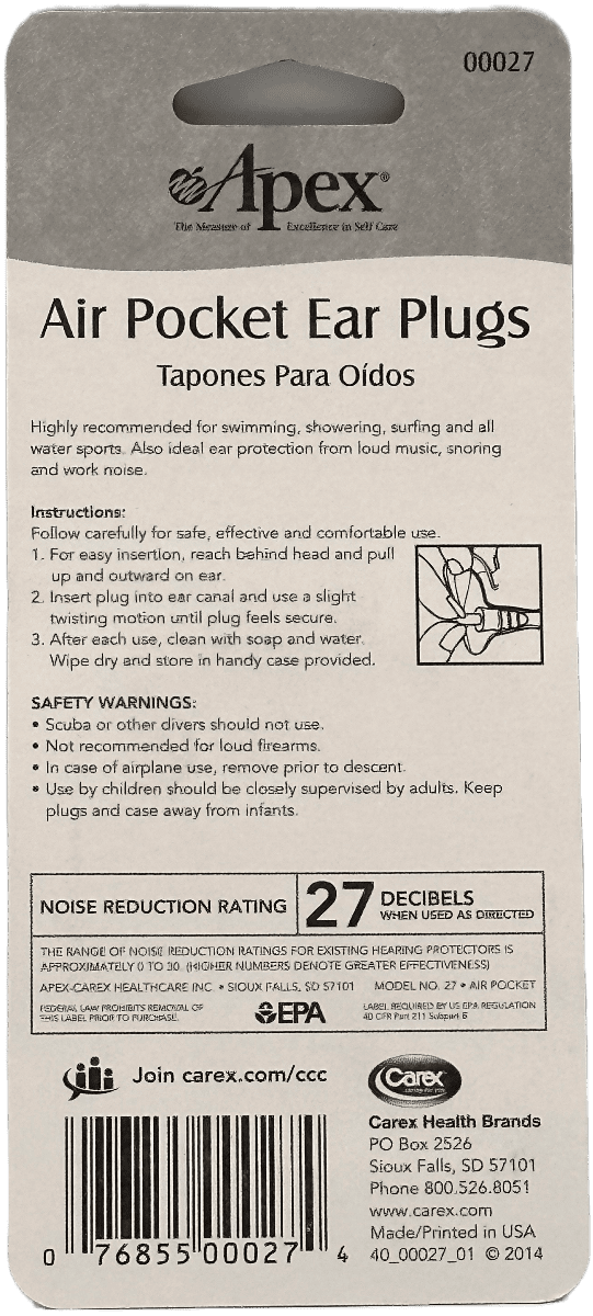 Apex Air Pocket Ear Plugs: 27dB Protection for Work & Play