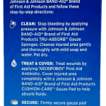 - TREAT & COVER: Treat wounds by applying Neosporin first aid Antibiotic. Cover injured area completely with a Johnson & Johnson Band-Aid brand of first Aid products cushion-care gauze pad to help absorb fluids.