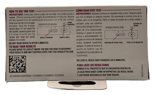 Read package insert before use. English and Spanish instructions inside.