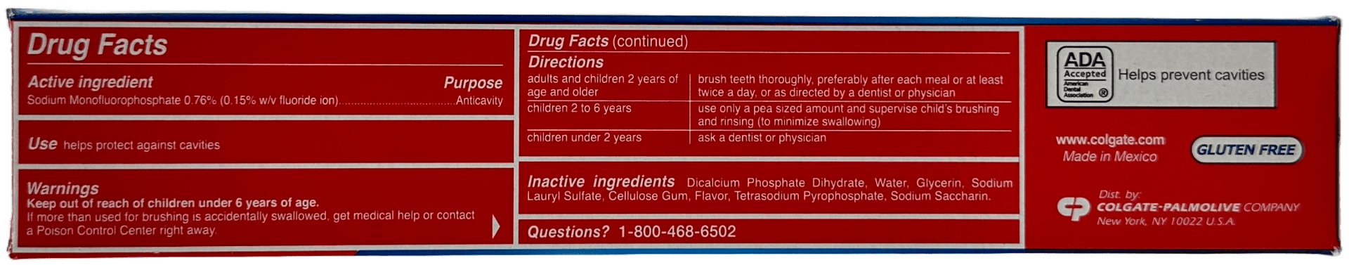 If more than used for brushing is accidentally swallowed, get medical help or contact a Poison Control Center right away.