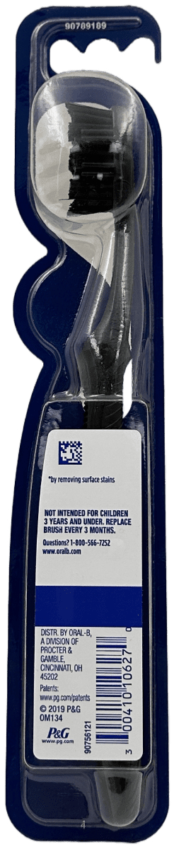 The Oral-B Charcoal toothbrush features charcoal infused bristles! It whitens teeth by removing surface stains. PowerTip bristles help clean plaque in hard to reach places while Gum Massagers gently massage your gums and help clean along the gumline.